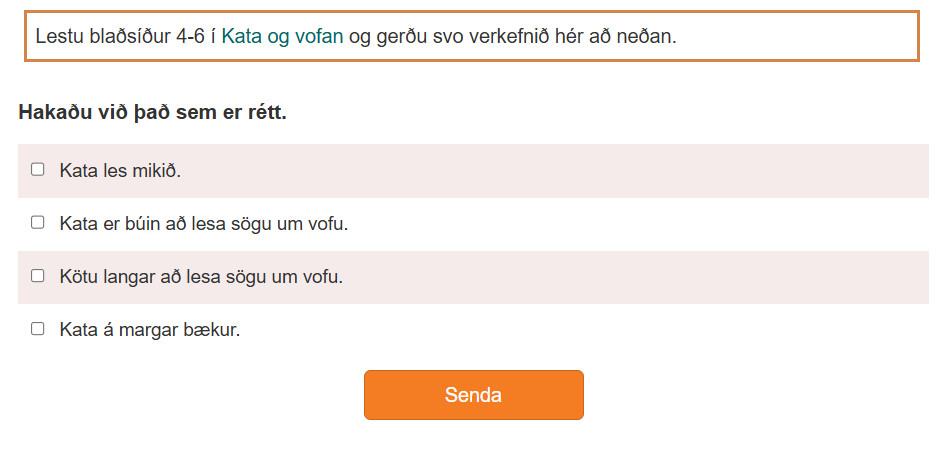 Hér gefst nemendum kostur á að æfa sig í að hlusta, lesa, skrifa og tjá sig á íslensku. Verkefnin eru tilvalin til að vinna samhliða því sem farið er í gegnum bókina